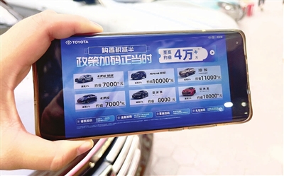 采訪中,多家4S店的銷售人員表示,最近看車的人很多,大家都在問購置稅減半的問題。銷售人員指著一輛卡羅拉向記者介紹,這輛車廠家指導(dǎo)價為12.78萬元,其中購置稅原本要1.3萬元左右,現(xiàn)在客戶只需要交6500元左右。同時最近還有數(shù)字人民幣相關(guān)推廣活動,預(yù)計可以再優(yōu)惠2000多元,加上廠商優(yōu)惠,總體算下來花費約11萬元。