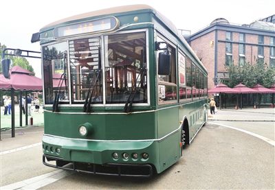 “鐺鐺車”長約12米,車身為啞光墨綠色,深沉典雅。走進(jìn)車廂,棕紅色地板、仿木質(zhì)結(jié)構(gòu)座椅、同色系車窗和書架,每一處都彰顯經(jīng)典。