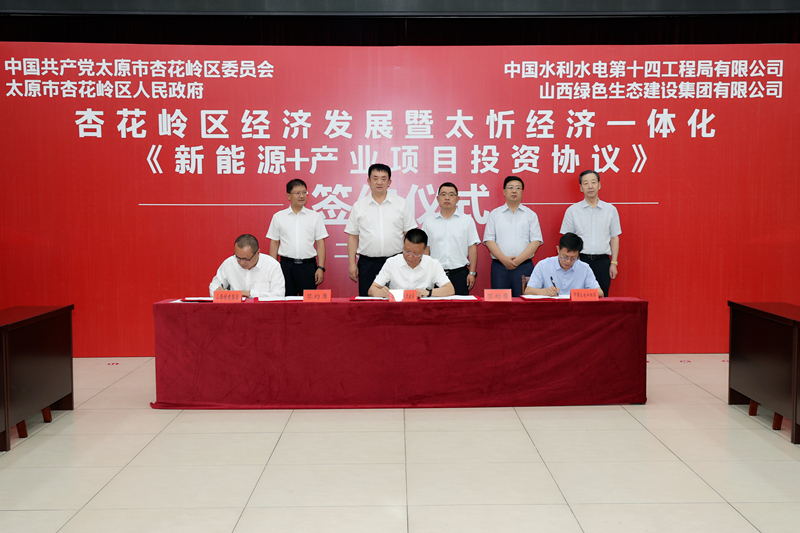 人民網(wǎng)太原7月13日電(記者 雷昊)今日,太原市杏花嶺區(qū)經(jīng)濟(jì)發(fā)展暨太忻經(jīng)濟(jì)一體化“新能源+產(chǎn)業(yè)項目投資協(xié)議”簽約儀式舉行。中國水利水電第十四工程局有限公司、山西綠色生態(tài)建設(shè)集團(tuán)有限公司與杏花嶺區(qū)人民政府簽訂《新能源+產(chǎn)業(yè)項目合作投資協(xié)議》,在傳統(tǒng)支柱行業(yè)轉(zhuǎn)型升級、基礎(chǔ)設(shè)施改造、綠色產(chǎn)業(yè)、鄉(xiāng)村振興、文旅產(chǎn)業(yè)、生態(tài)治理等領(lǐng)域開展深度合作,預(yù)計總投資80億元。