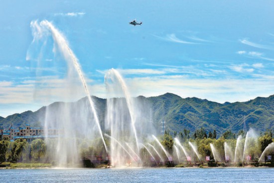 36支水槍同時(shí)出水,受災(zāi)區(qū)域的水位快速下降——“城市綜合排澇”展現(xiàn)了消防救援人員聯(lián)動(dòng)排水集團(tuán)緊急排險(xiǎn)的能力。 本報(bào)記者 白繼開攝