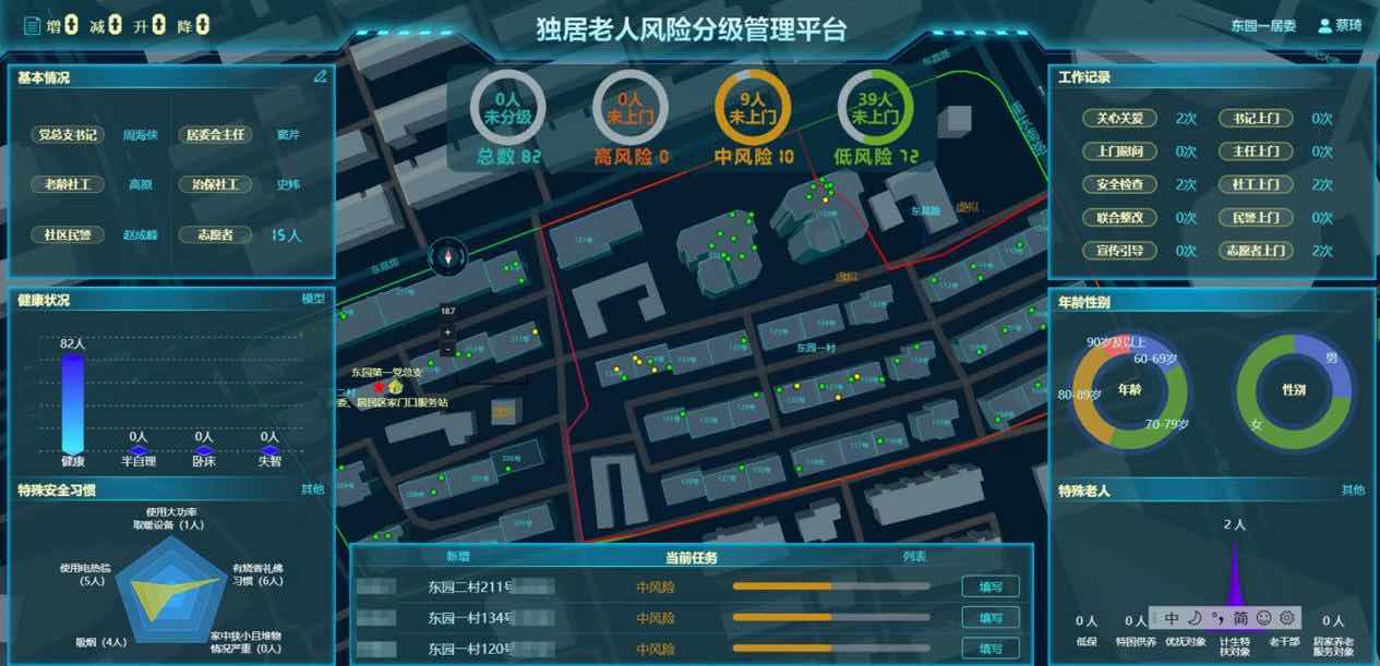 獨(dú)居老人風(fēng)險(xiǎn)分級管理平臺(tái)。東一居民區(qū)供圖