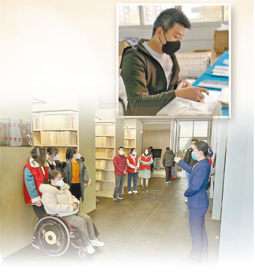 無(wú)障礙設(shè)施日益完善,信息無(wú)障礙建設(shè)也在加快推動(dòng)。走進(jìn)二樓借閱室,靠近門(mén)口的桌上,擺著“殘疾人閱讀專(zhuān)席”標(biāo)簽,桌前置有6輛輪椅。尹維將下半身卡進(jìn)桌下:“高度正合適?!?/p>