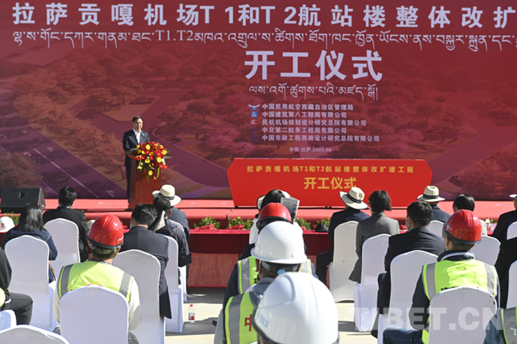 中國西藏網(wǎng)訊 6月2日,民航西藏區(qū)局舉行拉薩貢嘎機(jī)場(chǎng)T1和T2航站樓整體改擴(kuò)建工程開工儀式?! ?/p>
