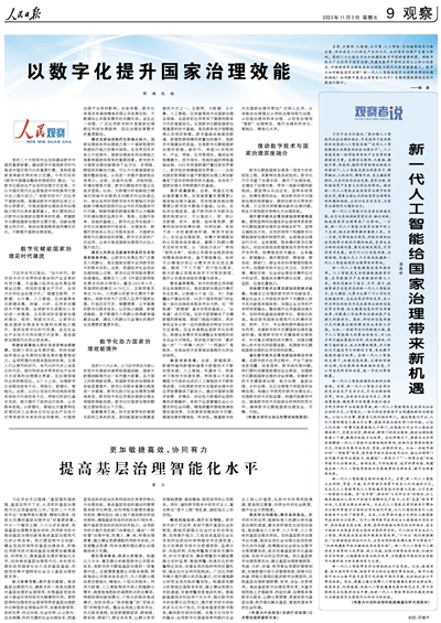 人民日報(bào)整版探討數(shù)字化如何賦能國家治理