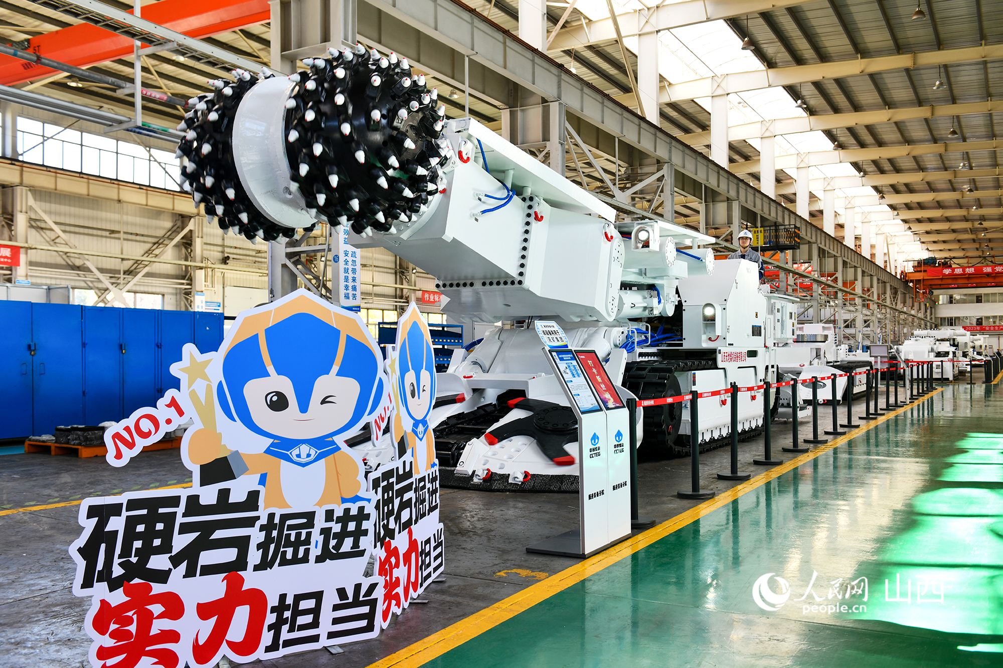 太原研究院彩虹基地生產(chǎn)車間陳列的巷道掘進(jìn)裝備。人民網(wǎng)記者 焦搏文攝