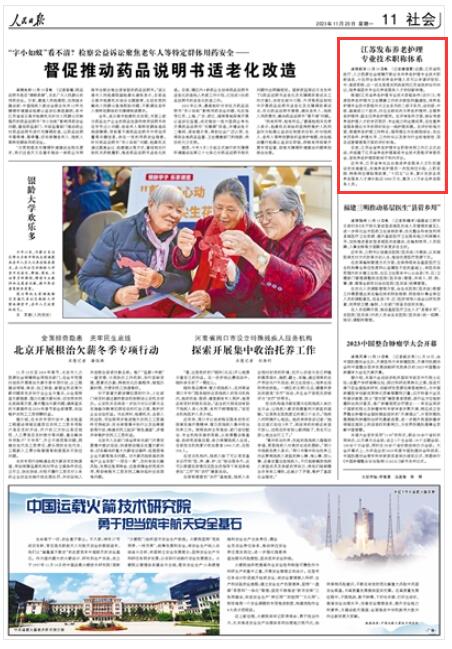 人民日報|江蘇發(fā)布養(yǎng)老護理專業(yè)技術職稱體系