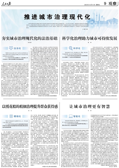 城市治理體系和治理能力現(xiàn)代化是國(guó)家治理體系和治理能力現(xiàn)代化的重要內(nèi)容。習(xí)近平總書記指出:“推進(jìn)國(guó)家治理體系和治理能力現(xiàn)代化,必須抓好城市治理體系和治理能力現(xiàn)代化?!笨倳浽谏虾?疾鞎r(shí)強(qiáng)調(diào):“把增進(jìn)民生福祉作為城市建設(shè)和治理的出發(fā)點(diǎn)和落腳點(diǎn)”。本期觀察版圍繞如何提高城市治理法治化、科學(xué)化、精細(xì)化、智能化水平,更好推進(jìn)城市治理現(xiàn)代化、全面踐行人民城市理念進(jìn)行探討。