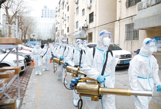 朝陽藍(lán)天救援隊22名隊員近日換上防護(hù)服,走進(jìn)六里屯甜水西園等3個社區(qū),為社區(qū)做防疫消殺,以減輕社區(qū)和物業(yè)工作人員的壓力。隊員們穿著防護(hù)服、佩戴口罩、安全帽、橡膠手套,手持70多斤重的彌霧機(jī)和藥箱,采用地毯式噴灑消毒的方式,對社區(qū)封(管)控區(qū)的道路、綠化帶等區(qū)域進(jìn)行細(xì)致消殺,確保小區(qū)內(nèi)無死角、無盲區(qū)。