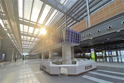 4月12日,豐臺(tái)站,中央光庭將自然光引入車站候車廳,并從空間上分為南北兩部分。新京報(bào)記者 王貴彬 攝