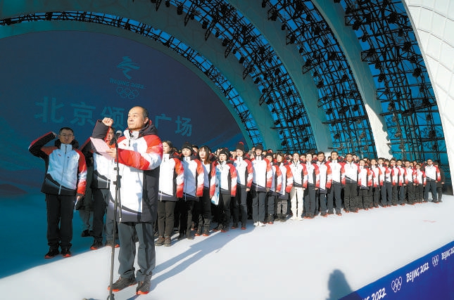 2021年元旦期間,北京頒獎廣場剛剛落成,團(tuán)隊(duì)在舞臺上舉行誓師大會。