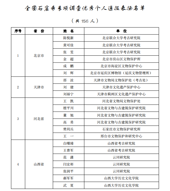 國家文物局通報表揚(yáng)全國石窟寺專項調(diào)查先進(jìn)單位和優(yōu)秀個人