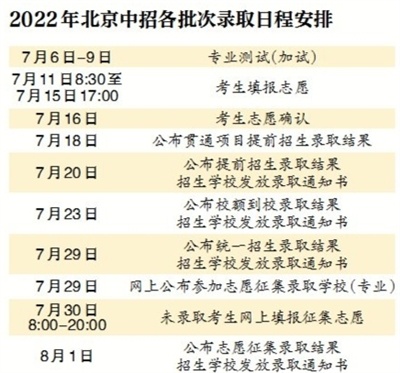 北京中招錄取7月17日啟動7月11日至15日填報志愿