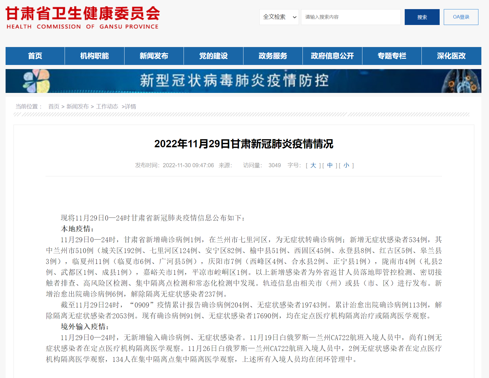 甘肅省衛(wèi)健委官網(wǎng)截圖