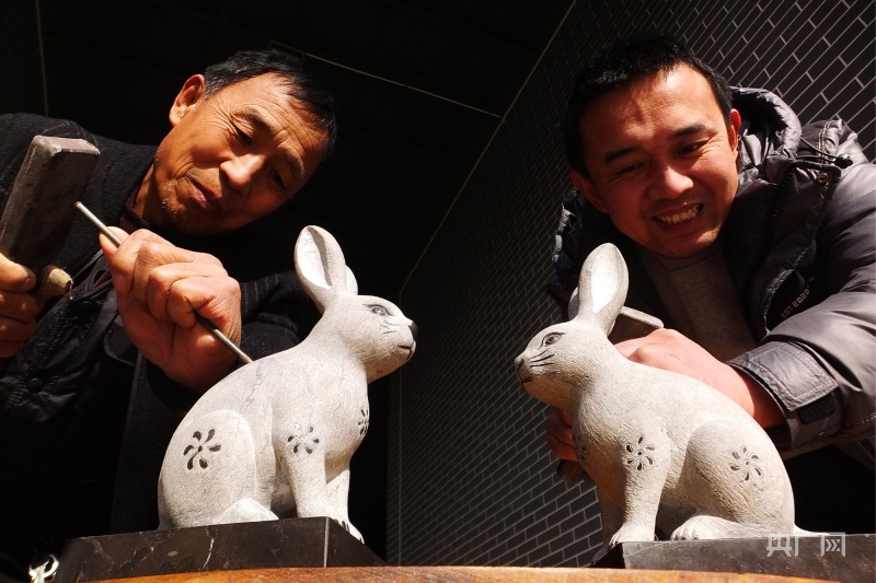 首批面世的兔年生肖系列石雕,耗時6個多月,有大小15種造型,采用傳統(tǒng)技藝與現(xiàn)代工藝相結(jié)合的雕刻技藝,其造型活靈活現(xiàn)、憨態(tài)可掬。
