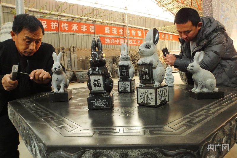 山西運城:兔年生肖系列石雕面世