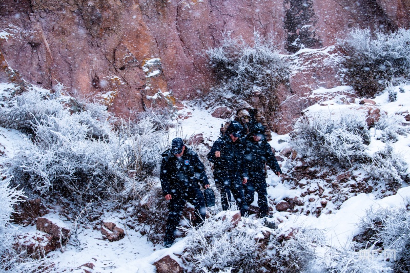 新疆伊犁邊境管理支隊洪海溝邊境警務(wù)站民警冒雪深入邊境地區(qū)巡邏(央廣網(wǎng)發(fā) 郭瑋 攝)