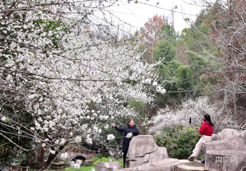 游客正在與梅花拍合照(央廣網發(fā) 葉婷婷 攝)