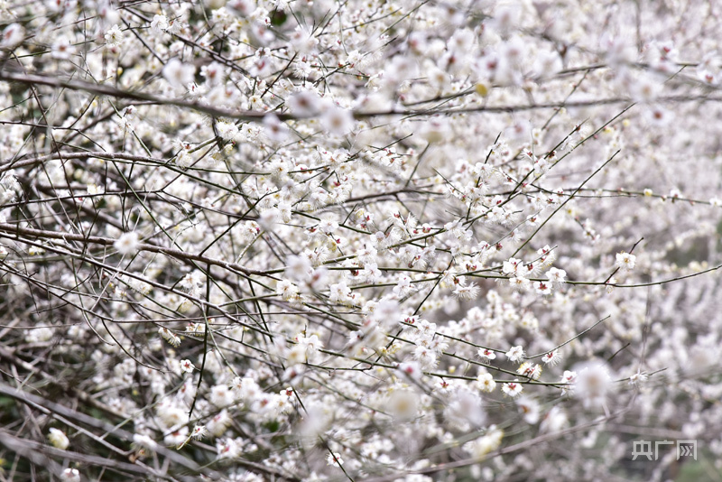 央廣網龍南1月29日消息(記者胡斐)正值春節(jié)時期,江西省龍南市金雞寨公園半山腰處開滿梅花,寒梅盛開,花香四溢,猶如皚皚白雪,點綴冬日。不少市民及外地游客被美景所吸引,紛紛前來登山賞花,拍照留念。