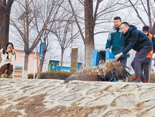 今年農(nóng)歷大年初三晚上,懷柔區(qū)寶山鎮(zhèn)牛圈子村村民在本村發(fā)現(xiàn)了一只大鳥,疑似老鷹,當時這只大鳥已無法正常飛行,村民當即報警求助。懷柔區(qū)園林綠化局野生動植物保護管理中心工作人員得知后,第一時間與村民取得聯(lián)系,并確認這只大鳥為國家一級保護動物白尾海雕。第二天,這只白尾海雕由北京市陸生野生動物救護中心專業(yè)人員接走進行治療。