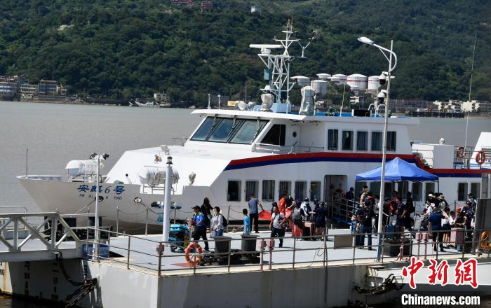 7月3日,“安麒6號”輪抵達福州馬尾瑯岐客運碼頭,馬尾-馬祖航線運送旅客突破666666人次?!≈行律缬浾? 王東明 攝