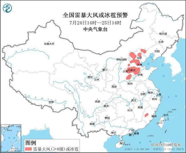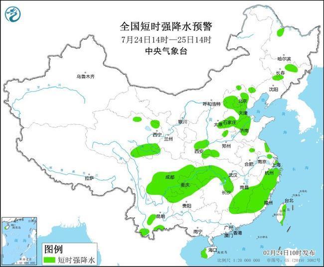 中央氣象臺7月24日10時發(fā)布強(qiáng)對流天氣藍(lán)色預(yù)警