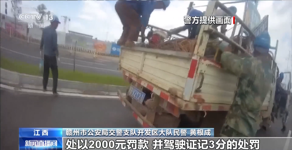 江西贛州市公安局交警支隊(duì)開發(fā)區(qū)大隊(duì)民警 黃根成:對(duì)貨車駕駛?cè)诉`反規(guī)定載客,超過十人的違法行為處以2000元罰款,駕駛證記3分的處罰。同時(shí),我們對(duì)現(xiàn)場(chǎng)的施工人員進(jìn)行了交通安全教育,強(qiáng)調(diào)他們這樣乘車的危害性,并對(duì)工地負(fù)責(zé)人下達(dá)了隱患整改通知書,并進(jìn)行警示約談。