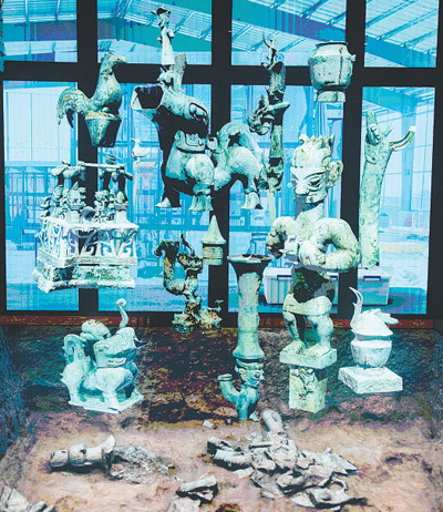 為保證三星堆新出土重器能在新館陳列中與觀眾見面,以及下一步文物保護(hù)和研究工作順利開展,新館采用了數(shù)字化修復(fù)演示的新展陳方式。