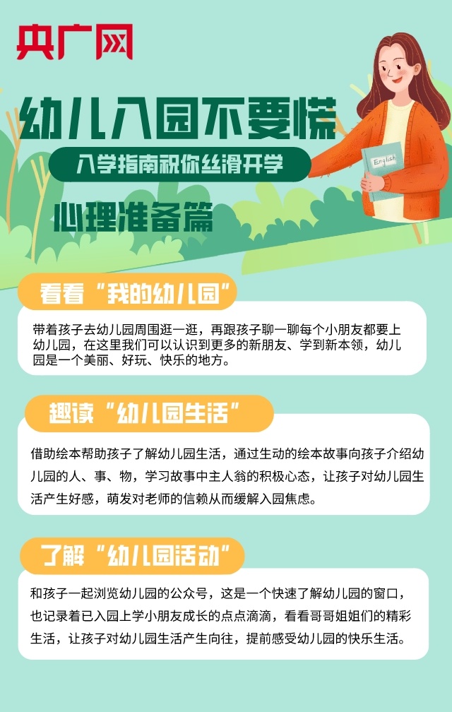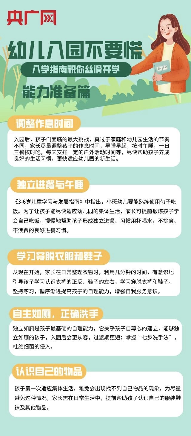 央廣網(wǎng)北京8月27日消息 幼兒園是人生的第一所學(xué)校,在這里,孩子們將開啟真正的學(xué)習(xí)生活和社會生活??梢哉f,這一階段對于孩子的性格塑造和習(xí)慣養(yǎng)成都有著十分重要的影響。那么幼兒入園前,新手爸媽應(yīng)該做好哪些準(zhǔn)備工作呢?別慌,這份入學(xué)指南請收藏!