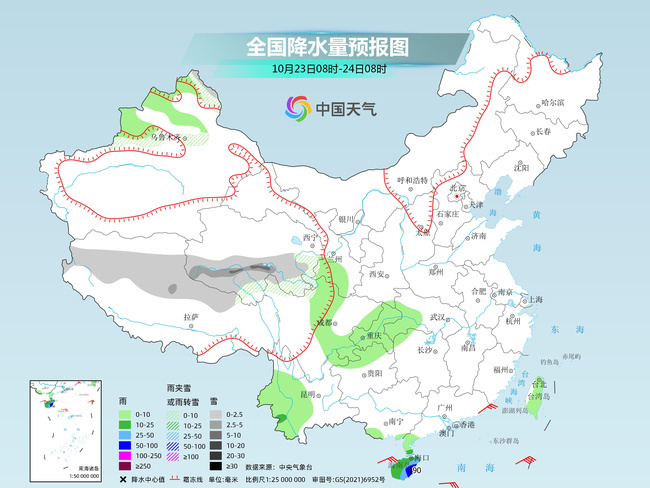中央氣象臺預(yù)計,今天,受“三巴”殘余環(huán)流和冷空氣持續(xù)影響,華南局地仍有強風雨天氣,其他大部地區(qū)將以晴或多云為主。具體來看,新疆北疆北部、西藏東部和北部、青海南部等地部分地區(qū)有小到中雪或雨夾雪。廣西東南部、雷州半島、海南島等地有中到大雨,其中,海南島東部等地部分地區(qū)有暴雨或大暴雨(100~180毫米)。
