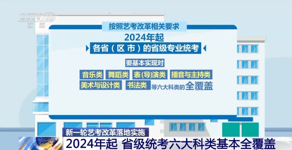 按照藝考改革相關(guān)要求,2024年起,各?。▍^(qū)、市)的省級(jí)專業(yè)統(tǒng)考要基本實(shí)現(xiàn)對(duì)音樂(lè)類、舞蹈類、表(導(dǎo))演類、播音與主持類、美術(shù)與設(shè)計(jì)類、書法類等六大科類的全覆蓋。戲曲類實(shí)行省際聯(lián)考。對(duì)于考試組織確有困難的個(gè)別科類,有關(guān)省份可通過(guò)省際聯(lián)考或“考評(píng)分離”等方式實(shí)施。據(jù)介紹,上海市已按照最新要求,對(duì)藝術(shù)類專業(yè)統(tǒng)考進(jìn)行了調(diào)整。