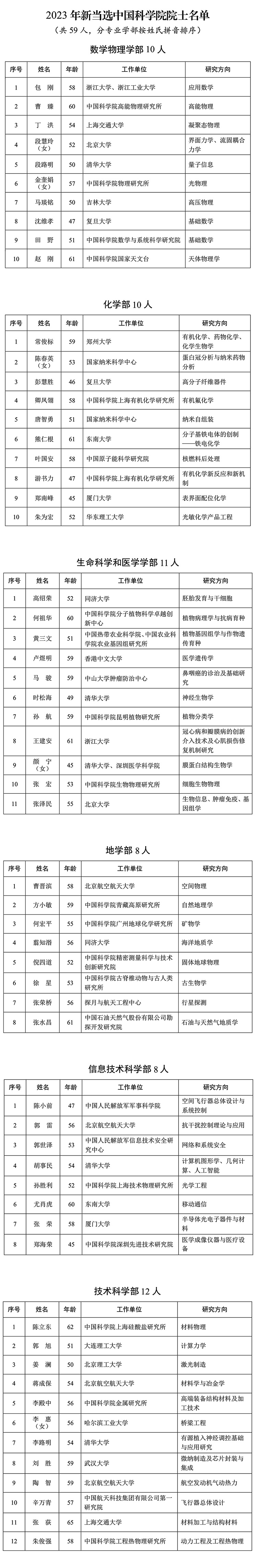 央廣網(wǎng)北京11月23日消息(記者 郭彥偉)11月22日,中國科學(xué)院、中國工程院公布2023年院士增選結(jié)果。2023年中國科學(xué)院選舉產(chǎn)生了59名中國科學(xué)院院士,中國工程院2023年院士增選共選舉產(chǎn)生74位中國工程院院士。
