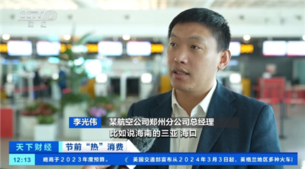 某航空公司鄭州分公司總經(jīng)理 李光偉:目前比較火熱的是春運(yùn)期間的一些旅游航線,比如海南的三亞、海口,云南的昆明、西雙版納等熱門航線。相較于11月份、12月份,增長了10倍左右,票比較緊張。