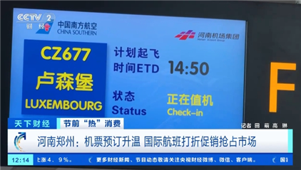 國際航班方面,近期隨著出境游需求的增加,部分航空公司加密和新開鄭州至盧森堡、米蘭以及濟(jì)州等地的國際航線,上座率也穩(wěn)步上升。部分航空公司還推出了線路打折套票,搶占節(jié)前市場。