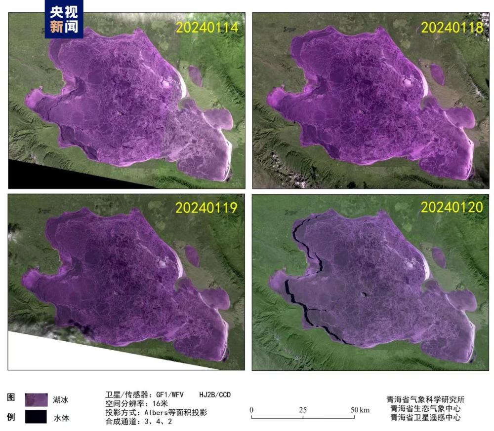 記者從青海省氣象局獲悉,衛(wèi)星遙感監(jiān)測顯示,1月14日起青海湖表面完全凍結(jié),依據(jù)《高原湖泊湖冰物候遙感監(jiān)測技術(shù)標準》(DB63/T1929-2021),湖泊表面連續(xù)5日完全被冰覆蓋的首日為完全凍結(jié)日,因此判定1月14日為青海湖完全凍結(jié)日。