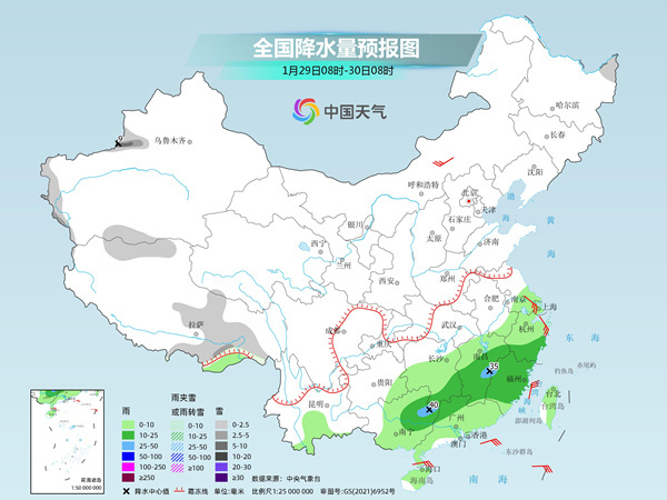 其中,1月31日,新疆伊犁河谷和南疆西部山區(qū)、西藏南部、陜西中北部、山西中南部、河北南部、河南北部、山東中南部等地部分地區(qū)有中到大雪或雨夾雪,陜西中部、山西南部、河南北部、山東西部等地局地有暴雪(10~16毫米)。江淮、江漢東部、江南北部等地部分地區(qū)有中到大雨,其中,安徽南部、湖北東部、湖南東北部等地局地有暴雨(50~70毫米)。