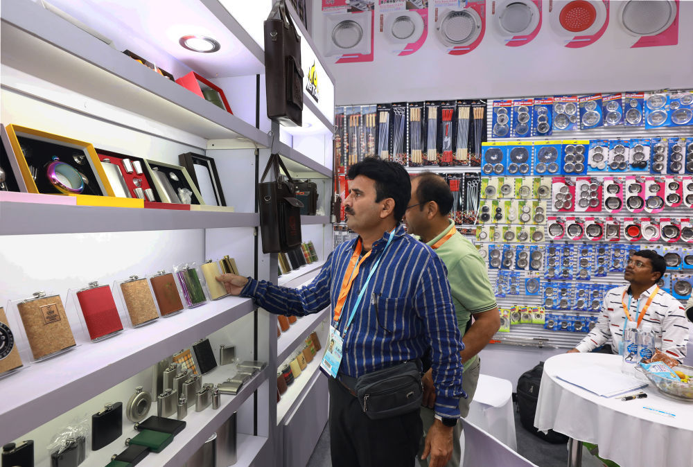 2023年10月21日,在義烏國(guó)際博覽中心舉行的第29屆中國(guó)義烏國(guó)際小商品(標(biāo)準(zhǔn))博覽會(huì)上,外商在采購小商品。新華社發(fā)(龔獻(xiàn)明 攝)