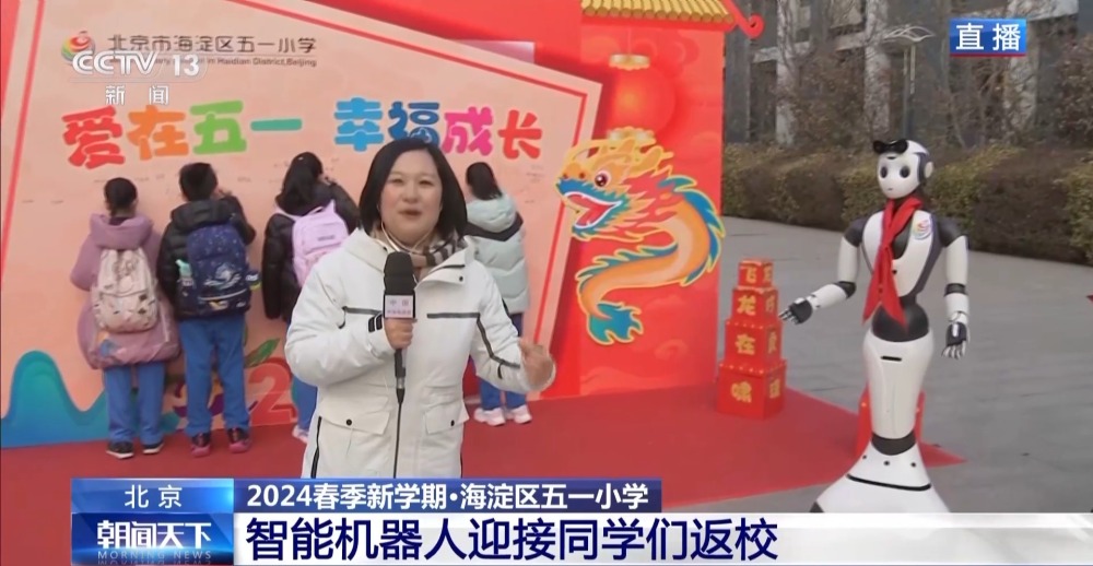 今天(2月26日)早上,除了老師們?cè)缭缭谛iT口迎接孩子們以外,還有一位“新伙伴”,就是智能機(jī)器人,也吸引了很多同學(xué)跟他對(duì)話、合影。