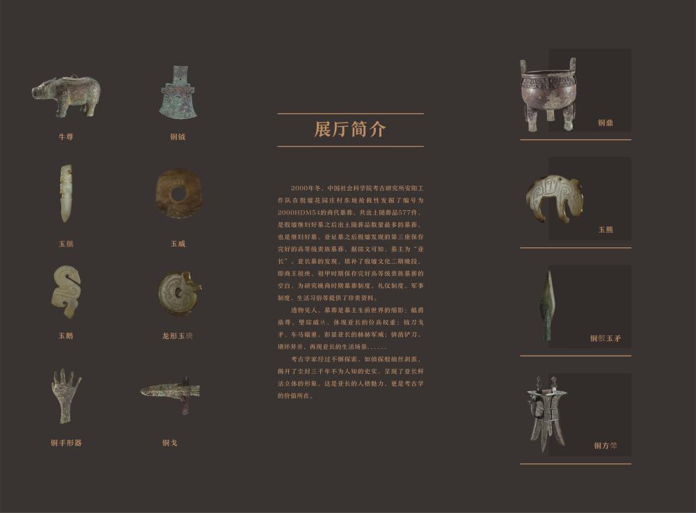 基本陳列將長期對(duì)公眾開放,展示幾代殷墟考古人接力前行、不斷求索,取得了一次又一次重要發(fā)掘成果,對(duì)夏商都邑的深入研究,為不同時(shí)期不同區(qū)域的商文化研究提供了對(duì)比標(biāo)尺。眾多首次亮相的各類珍貴文物再現(xiàn)了商朝繁盛的城市文明,完善的禮樂文明、發(fā)達(dá)的青銅文明、燦爛的文字文明以及高超的科技文明。全面系統(tǒng)地展現(xiàn)了我國商代晚期都城的風(fēng)貌,讓全世界看到一個(gè)中華文明早期發(fā)展階段最為輝煌的時(shí)代——大邑商。