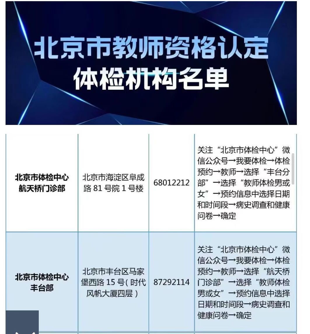 尚未進(jìn)行體檢的請自行與體檢機(jī)構(gòu)聯(lián)系完成體檢。北京市體檢中心將于3月中下旬在豐臺(tái)部、航天橋門診部和馬甸部舉行多場教師資格認(rèn)定體檢專場。具體時(shí)間安排可聯(lián)系相應(yīng)機(jī)構(gòu)咨詢。