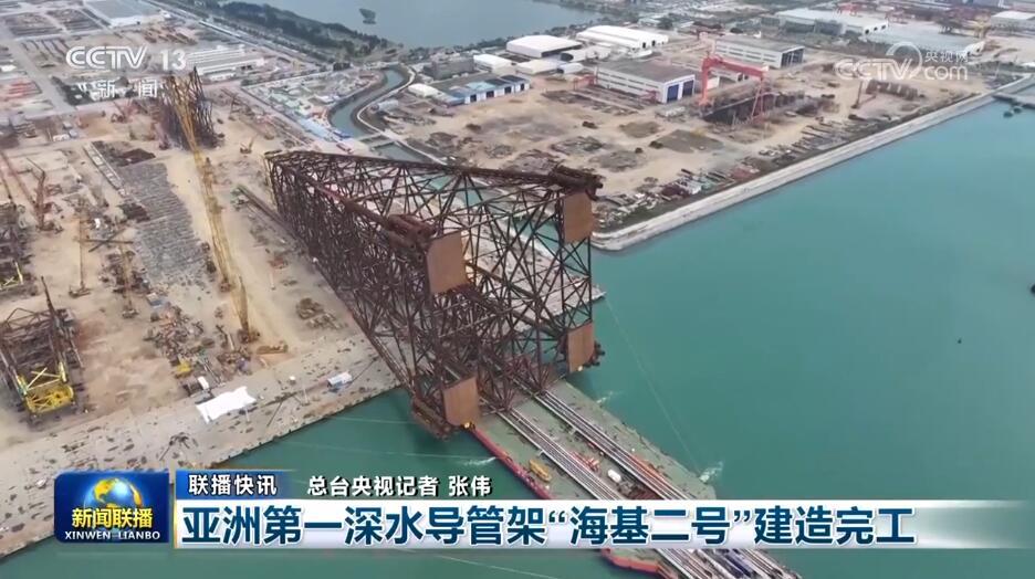 我國自主設(shè)計(jì)建造的亞洲第一深水導(dǎo)管架——“?;枴痹谥楹=ㄔ焱旯?。導(dǎo)管架作為海上油氣平臺的“地基”,支撐著整個平臺的龐大身軀?!昂;枴弊鳂I(yè)海域平均水深約324米,總高338.5米,總重達(dá)37000噸,標(biāo)志著我國深水超大型導(dǎo)管架平臺自主設(shè)計(jì)建造能力達(dá)到世界先進(jìn)水平。