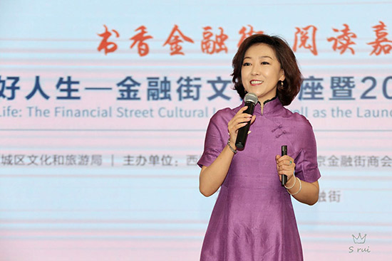 金融街街道辦事處主任徐建生,西城區(qū)文化與旅游局工會主席王來明,金融街商會秘書長、金融街書局執(zhí)行董事兼總經(jīng)理沈宏昌,中非產(chǎn)能合作基金綜合行政總監(jiān)詹旭,北京農(nóng)商銀行總行機(jī)關(guān)工會主席毛冉輝,北京百萬莊圖書大廈有限公司常務(wù)副總經(jīng)理陳強(qiáng),中國少年兒童新聞出版總社《中國兒童報》副主編高慧月,北京讀書形象大使、北京金牌閱讀推廣人宸冰老師等來自近50家金融機(jī)構(gòu)及大型企業(yè)集團(tuán)的近100多位閱讀愛好者到場參加了啟動儀式。隨后,北京讀書形象大使、北京金牌閱讀推廣人宸冰為現(xiàn)場嘉賓做了“閱讀成就美好人生”講座。