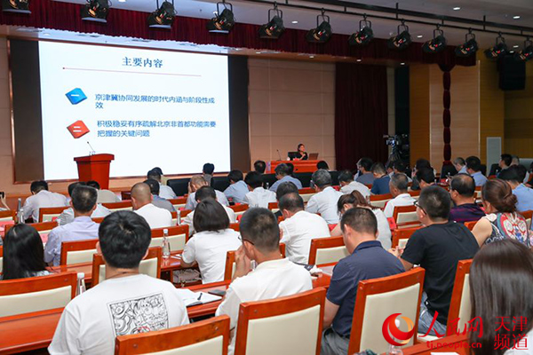 人民網(wǎng)天津6月28日電 (唐玉潔、陶建、孫一凡)6月27日下午,中共北京市委講師團(tuán)、天津市習(xí)近平新時代中國特色社會主義思想講師團(tuán)、河北省委講師團(tuán)聯(lián)合組織的“壯麗七十載 協(xié)同譜新篇”京津冀協(xié)同發(fā)展五周年聯(lián)合宣講活動在天津?yàn)I海新區(qū)舉辦,北京市委黨校刁琳琳、南開大學(xué)劉剛、河北省社科院劉來福三位專家學(xué)者同臺共話新中國成立70周年特別是京津冀協(xié)同發(fā)展戰(zhàn)略實(shí)施五年來三地的發(fā)展變化。北京市委講師團(tuán)副團(tuán)長李志東,天津市講師團(tuán)副團(tuán)長、天津市社科聯(lián)黨組成員、專職副主席張博穎出席會議,河北省委講師團(tuán)代表等出席,濱海新區(qū)區(qū)委常委、宣傳部部長馬波主持會議,來自濱海新區(qū)的近200名黨員干部現(xiàn)場聆聽了報告。