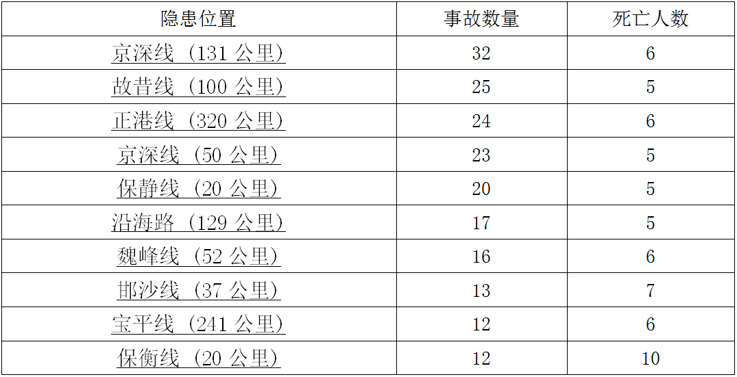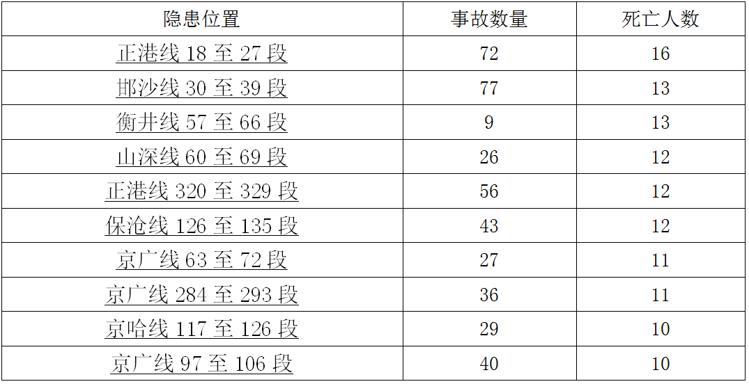10公里死亡10人以上的事故多發(fā)路段