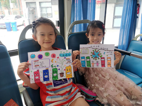 鄭州小朋友展示垃圾分類手抄報。連柏梁 攝