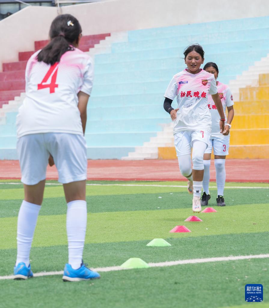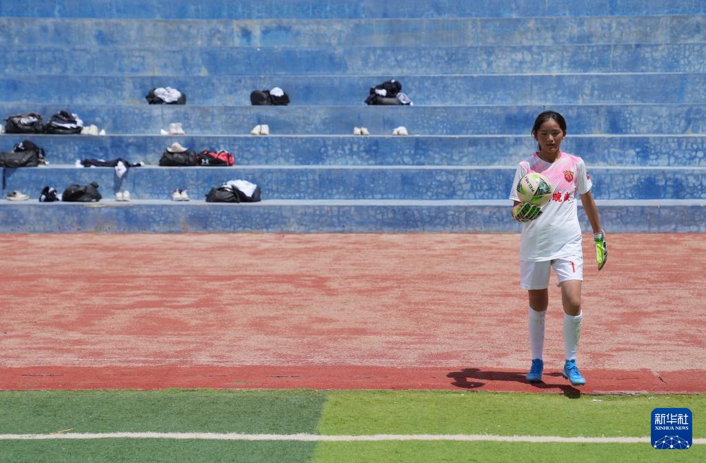 如今,球隊的發(fā)展得到了學(xué)校和社會的支持,為她們提供了更多機(jī)會和平臺。球隊教練王劍平是一名上海援藏教師,他感慨道:“很多孩子因球結(jié)緣,一個足球,一群伙伴,編織了她們的足球夢想。這些孩子年齡雖小,但她們能吃苦、肯付出。烈日下,她們就像堅強(qiáng)的格?;ò憔`放。”