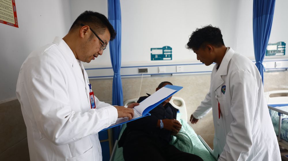 向桂林是一名援藏醫(yī)生,2023年3月,他從重慶市萬州區(qū)來到西藏自治區(qū)昌都市察雅縣開展醫(yī)療援藏工作。在察雅的一年半里,向桂林和隊員們參加了一百多次義診和下鄉(xiāng)指導(dǎo),累計接診門診患者1000余人次、救治住院患者400余人次,開展手術(shù)35臺,申報新技術(shù)10項。今年國慶,向桂林選擇繼續(xù)留守工作崗位?!爸荒茉谝曨l通話里和家人團聚了。但這是我們的責(zé)任更是一種榮譽。”向桂林說。