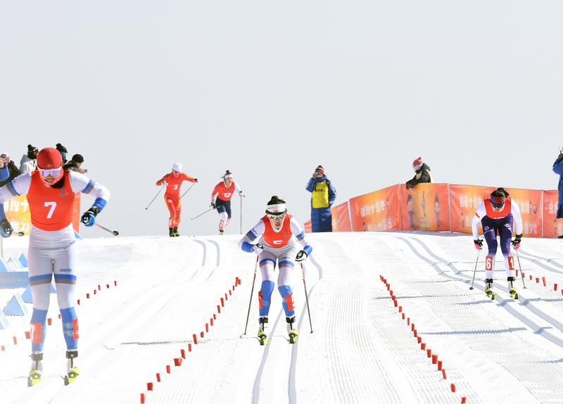 2月17日至27日,第十四屆全國冬季運(yùn)動會在內(nèi)蒙舉行。圖為西藏自治區(qū)運(yùn)動員格桑曲珍在越野滑雪青年組女子個人短距離(傳統(tǒng)技術(shù))賽中正在向終點(diǎn)沖刺。記者 洛桑 索朗群培 攝