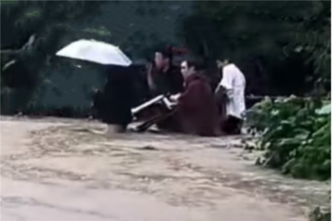 由于連續(xù)降雨,老人家中附近道路地勢低洼,蹣跚趕到時(shí),已經(jīng)水勢及腰。吳明輝趕忙和村民一起將老人抬至安全地帶。老人順利脫險(xiǎn)。