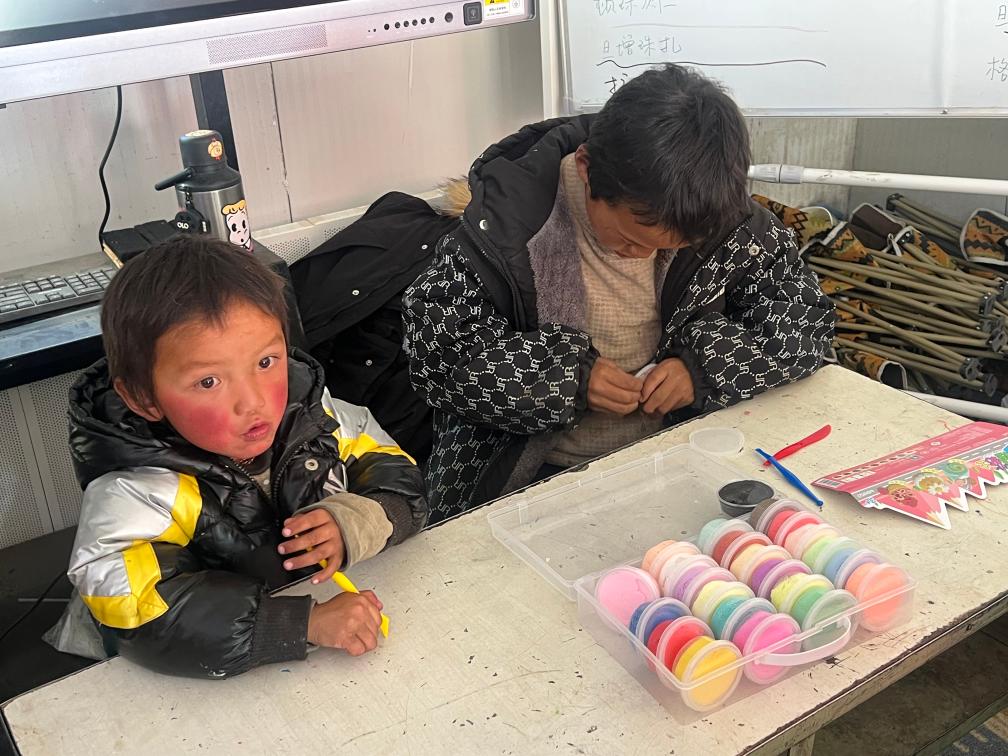 孩子們在“溫暖小屋”體驗彩泥課程(1月21日攝)。新華社發(fā) 仁青永曾 攝