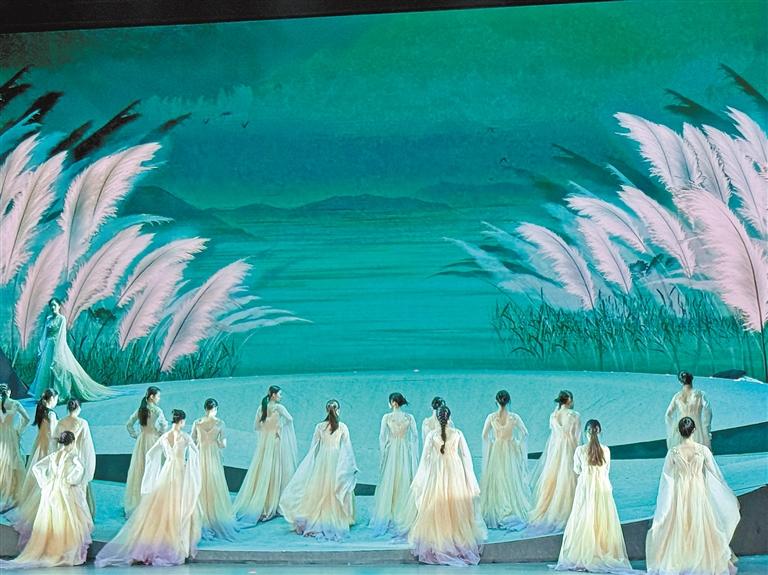 劇中的舞段既有取材于《詩經(jīng)》的女子群舞《蒹葭蒼蒼》,也有凸顯格薩爾王英雄氣概的《格薩爾王》和《英雄足跡》,以及引導人們積極向上的《鳳凰于飛》。觀眾可以近距離地領略展現(xiàn)漢藏農(nóng)耕文化、體現(xiàn)天人合一宇宙觀的《其耕澤澤》,以及體現(xiàn)民族融合的《悠悠我心》《茶城歡歌》《鼓舞中華》等作品。